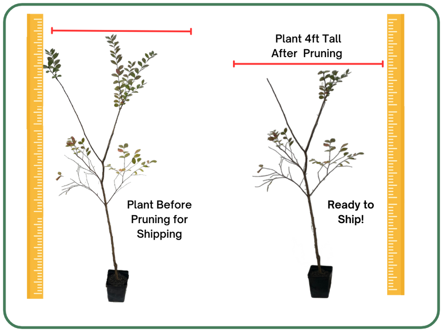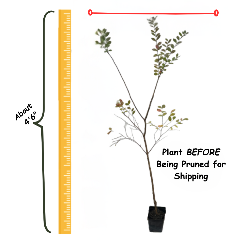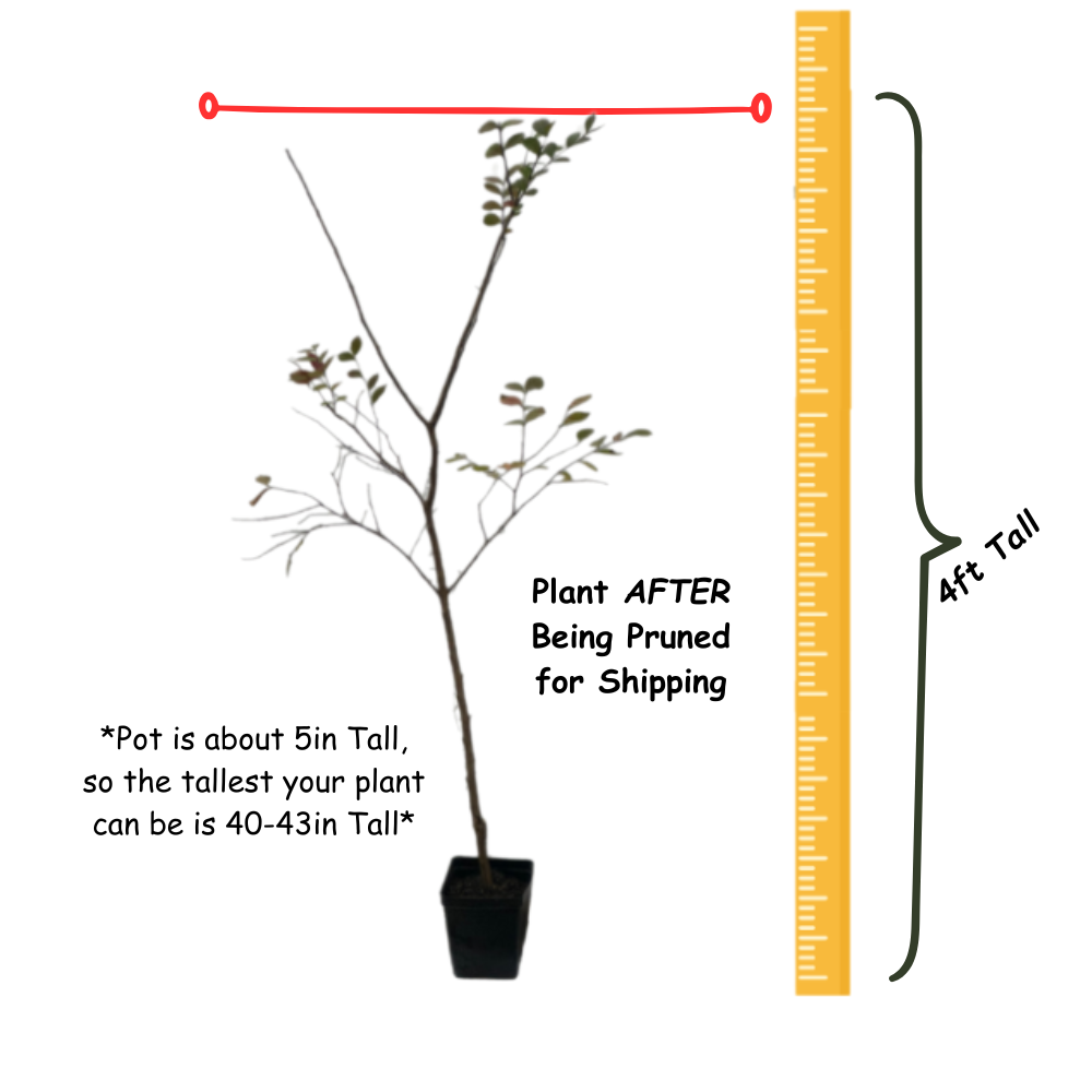 ✔ Standard Crape Myrtles – Ranging from 1-4 feet, depending on the variety. Some of our larger selections are trimmed down to 4 feet to fit shipping boxes efficiently.